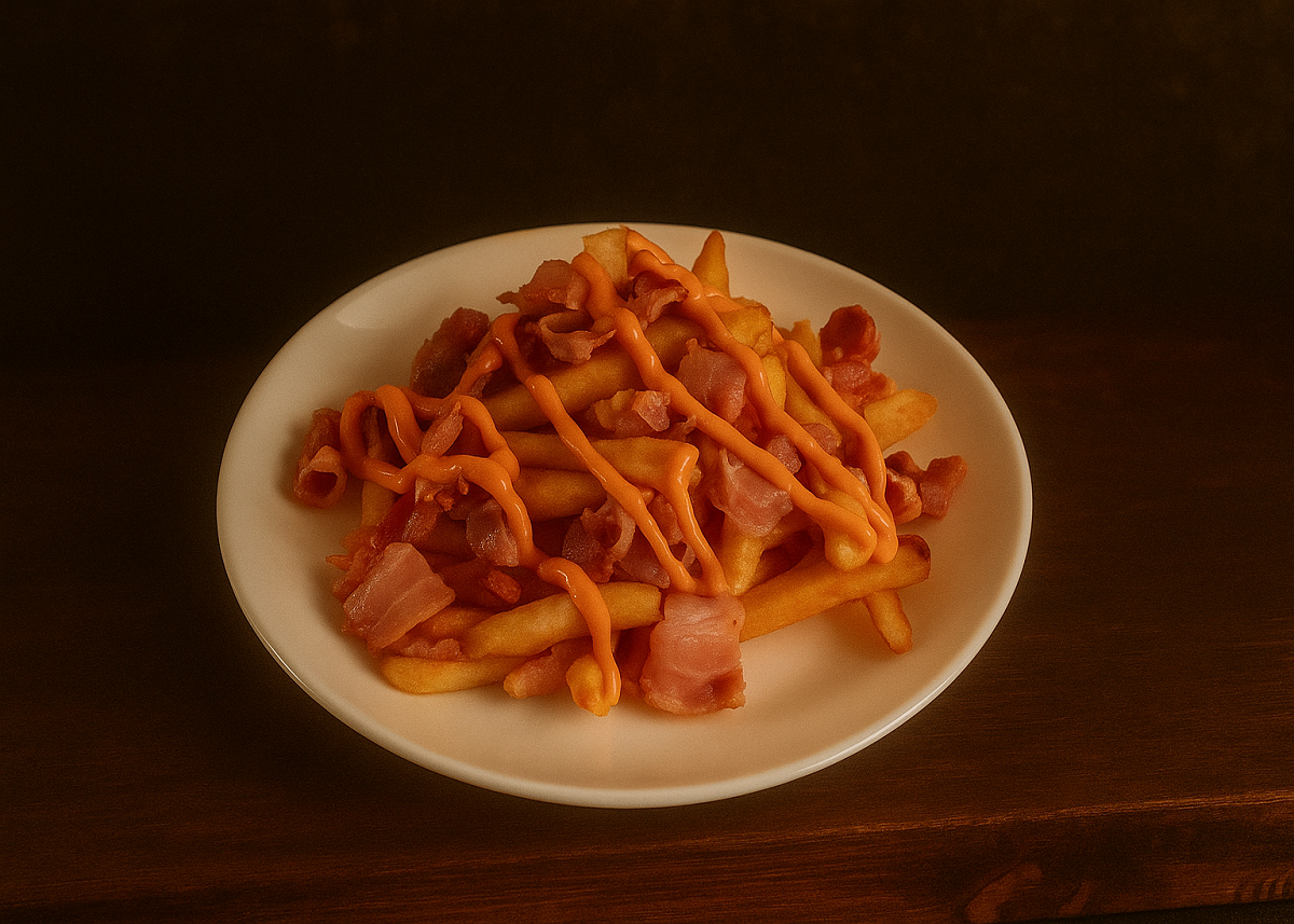 Сочные обжаренные ломтики бекона, золотистые брусочки картофеля фри и густой соус «Бургер» – всё то, что нужно для отличного начала трапезы. Попробуйте нашу горячую закуску!