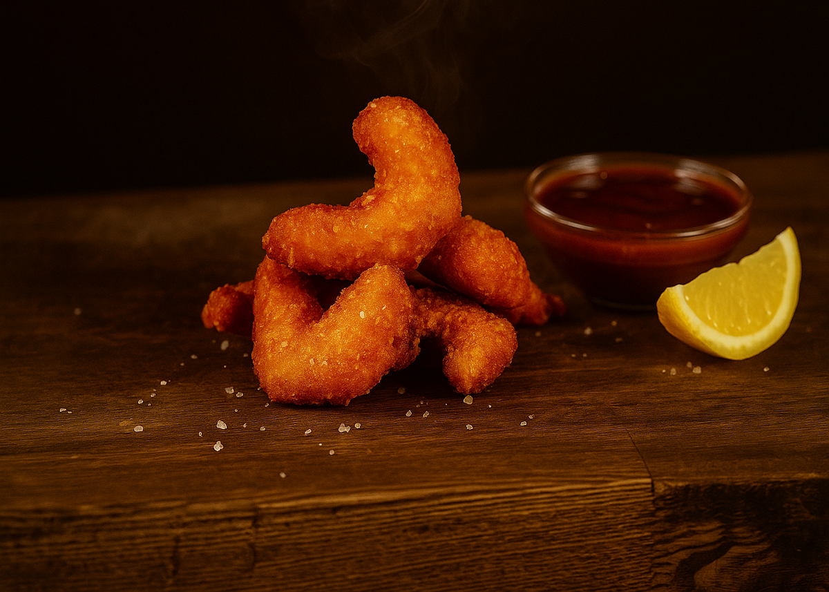 Попробуйте эту горячую закуску – она сочетает в себе нежный вкус и аппетитный хруст. Золотистая панировка окутывает сочные креветки, создавая неповторимое сочетание текстур.