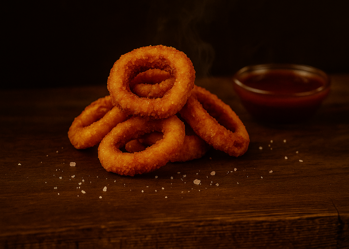 Хрустящие луковые кольца станут отличным дополнением к основным блюдам.